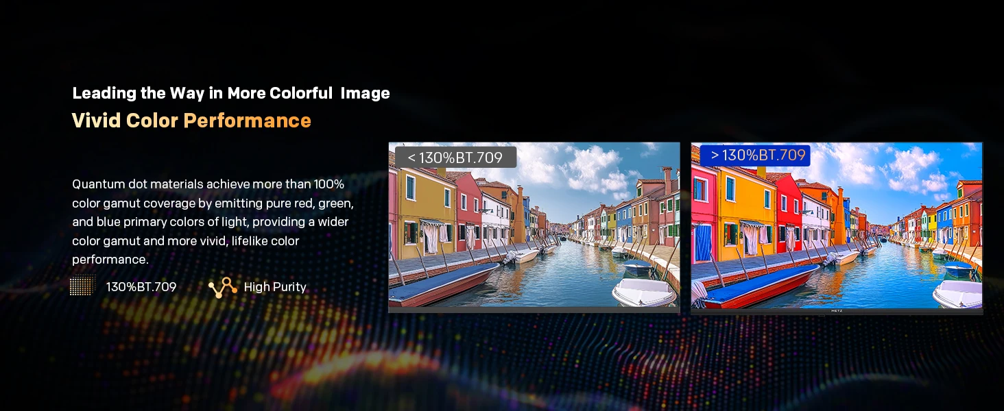 Technologie d'écran : OLED avec la technologie QLED+ Metz, offrant une luminosité accrue de 33% et une reproduction des couleurs à 130% BT.709 pour une expérience visuelle réaliste.