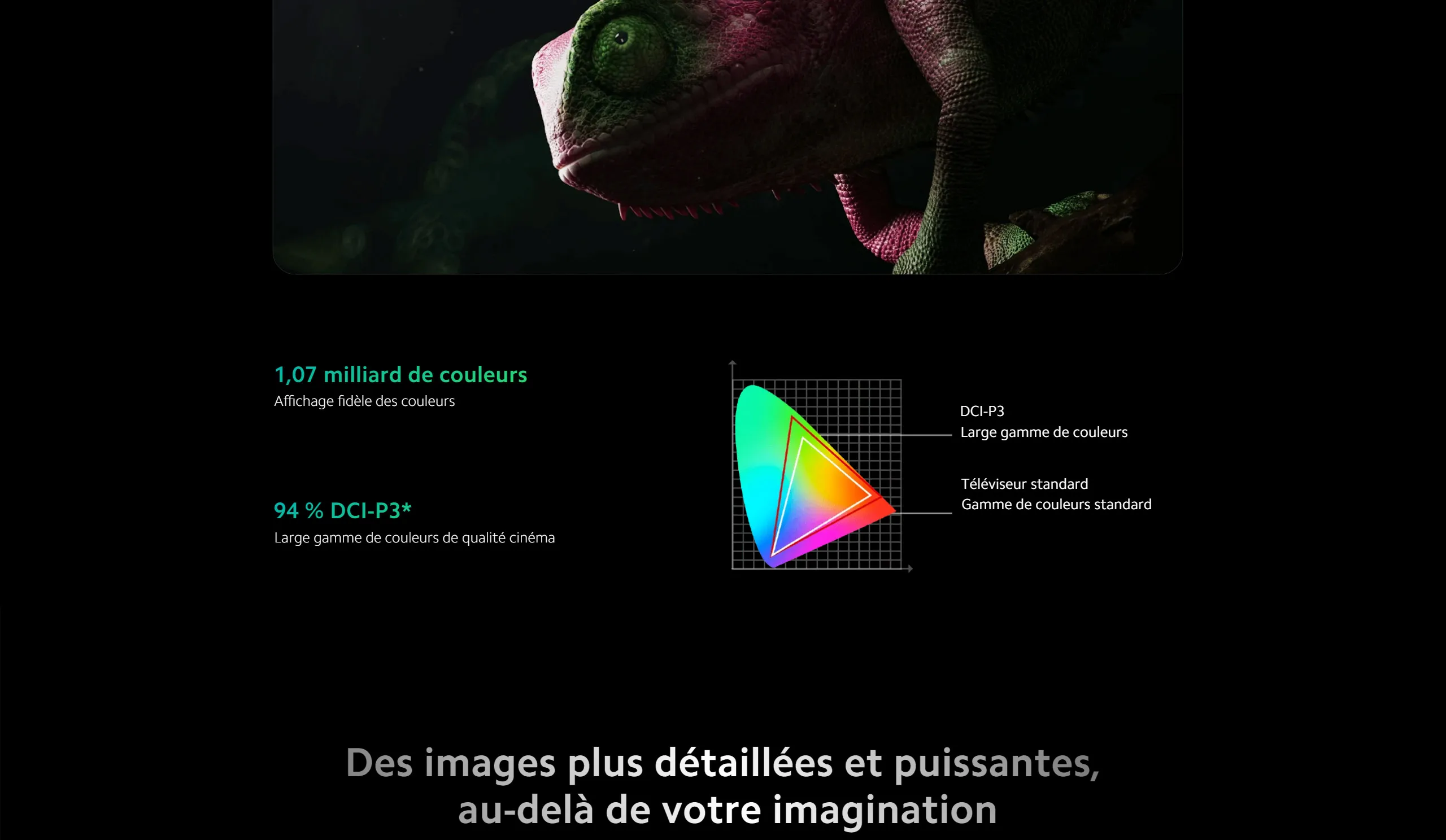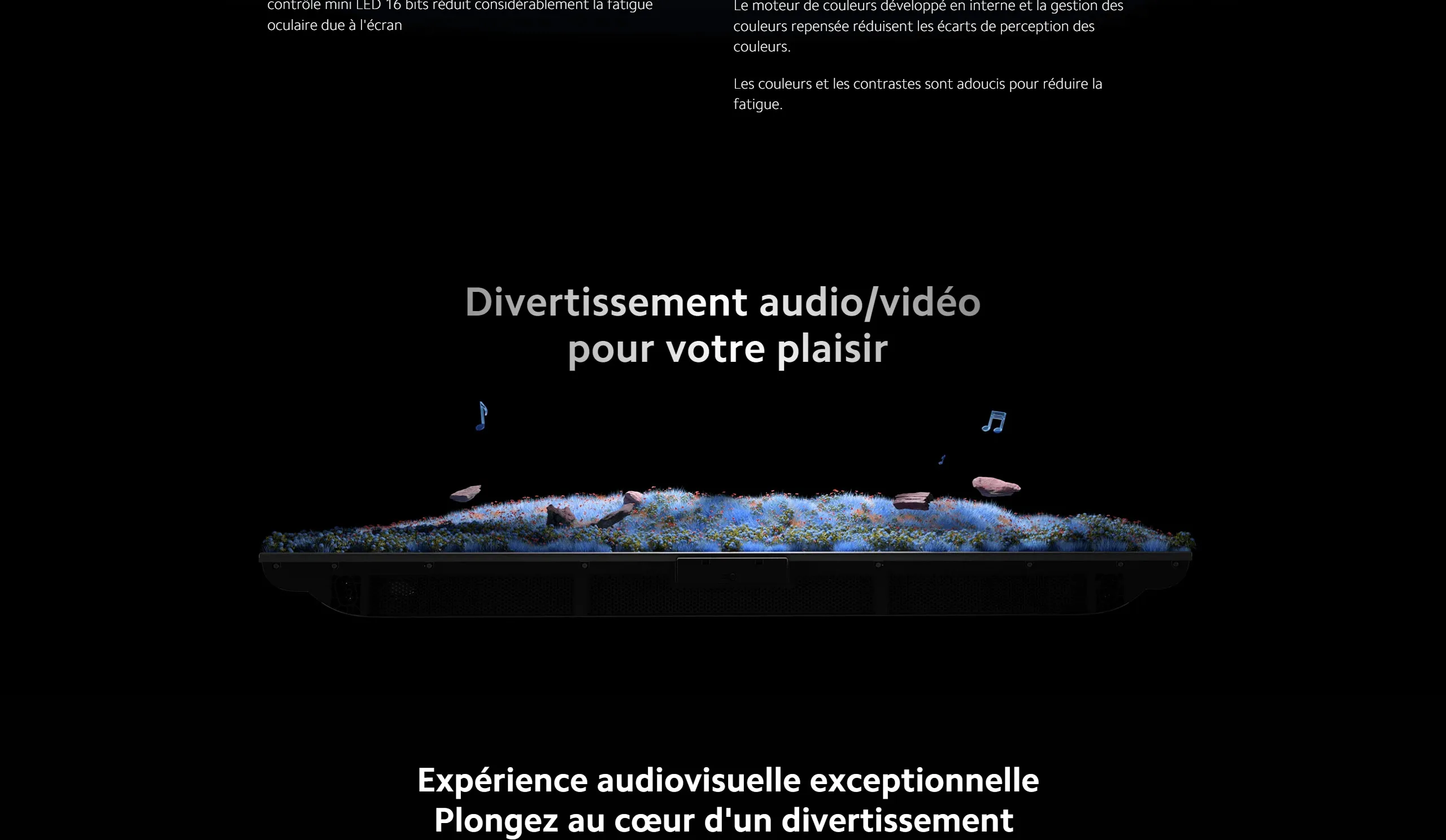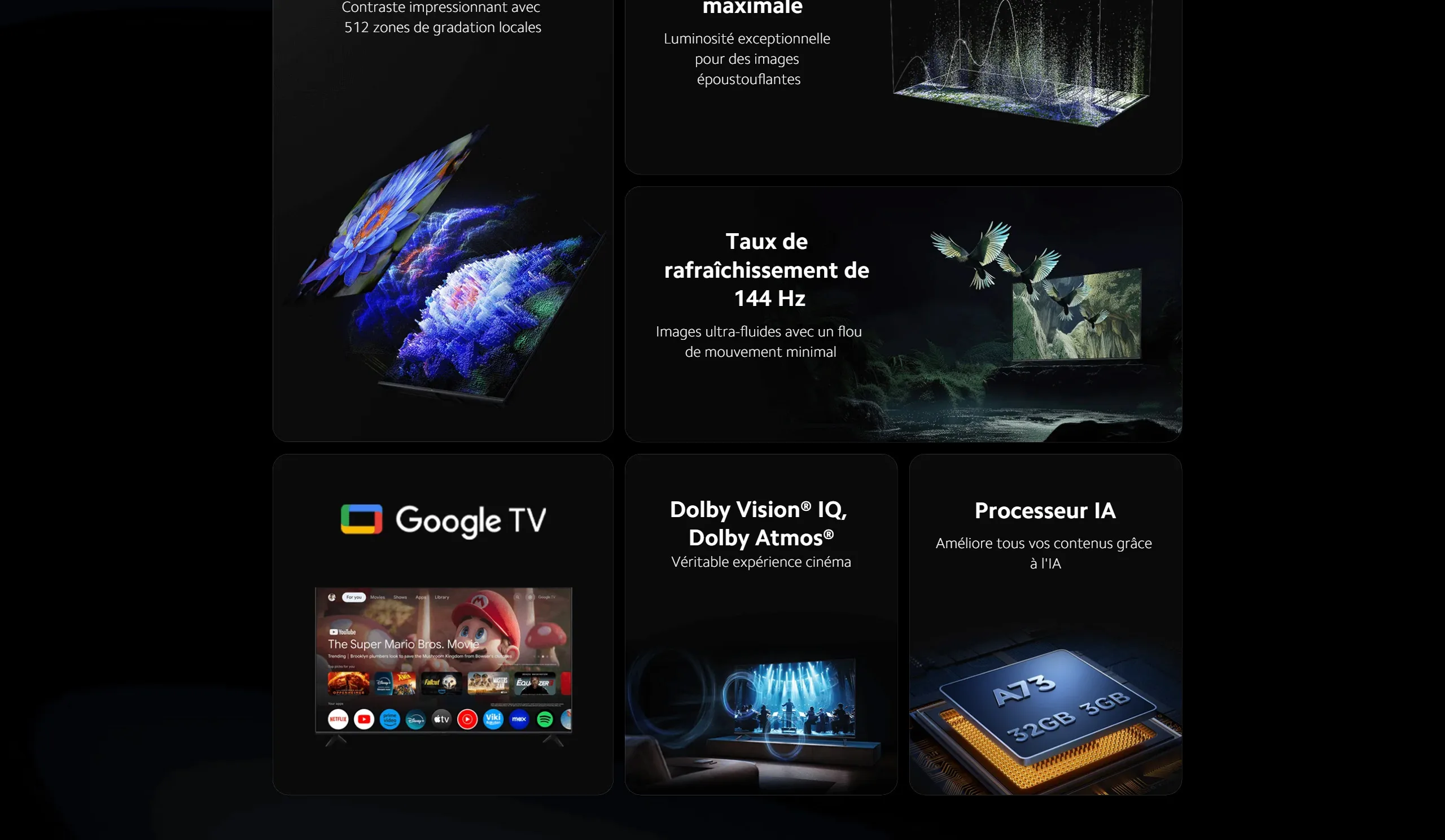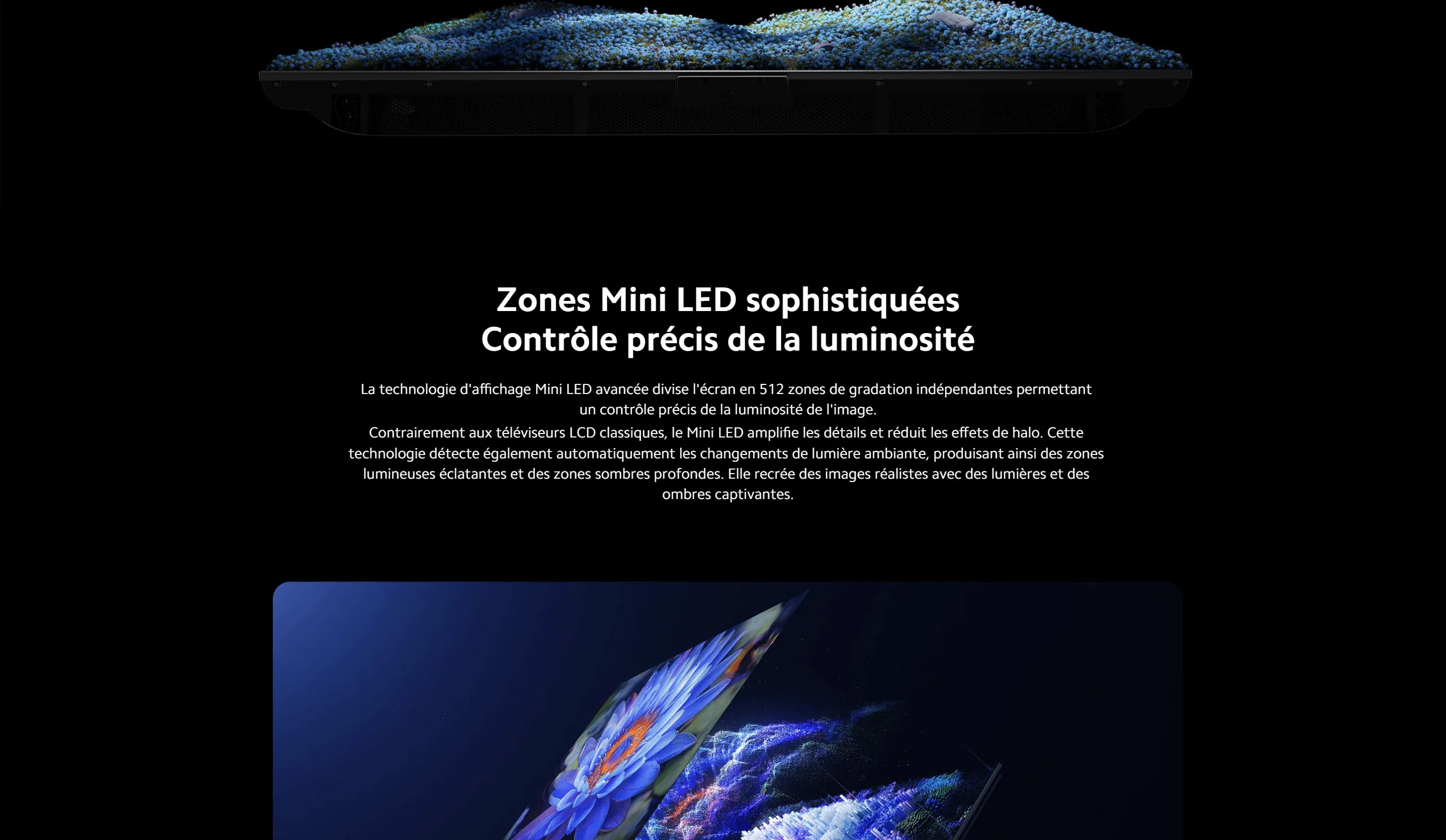 La technologie QD-Mini LED permet un contraste exceptionnel grâce à des zones de rétroéclairage localisées. Les noirs sont plus profonds, les couleurs plus vives, et les images plus détaillées, même dans les scènes sombres. -