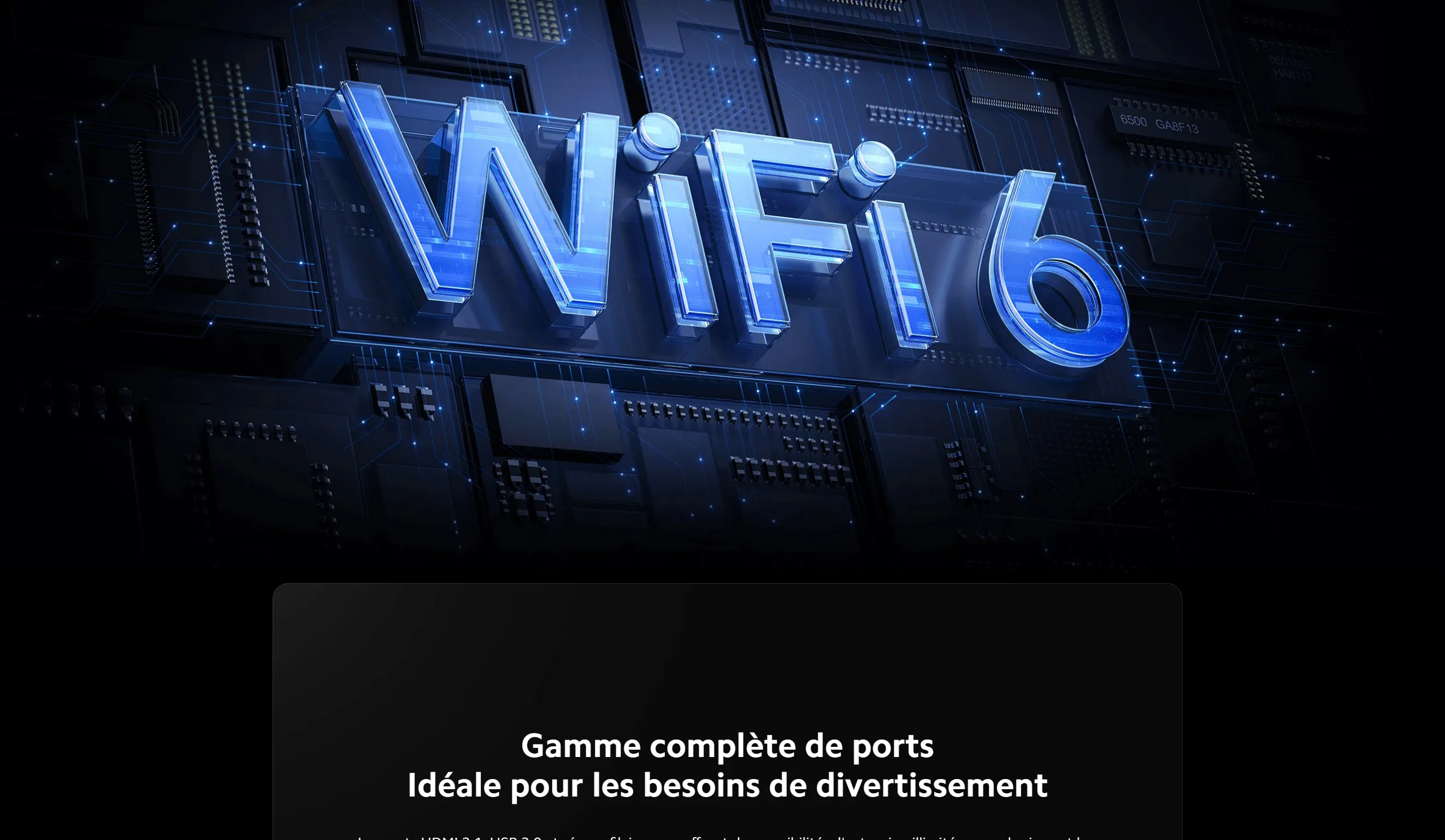 Entrées : 4x HDMI, 2x USB, 1x Ethernet, Wi-Fi, Bluetooth