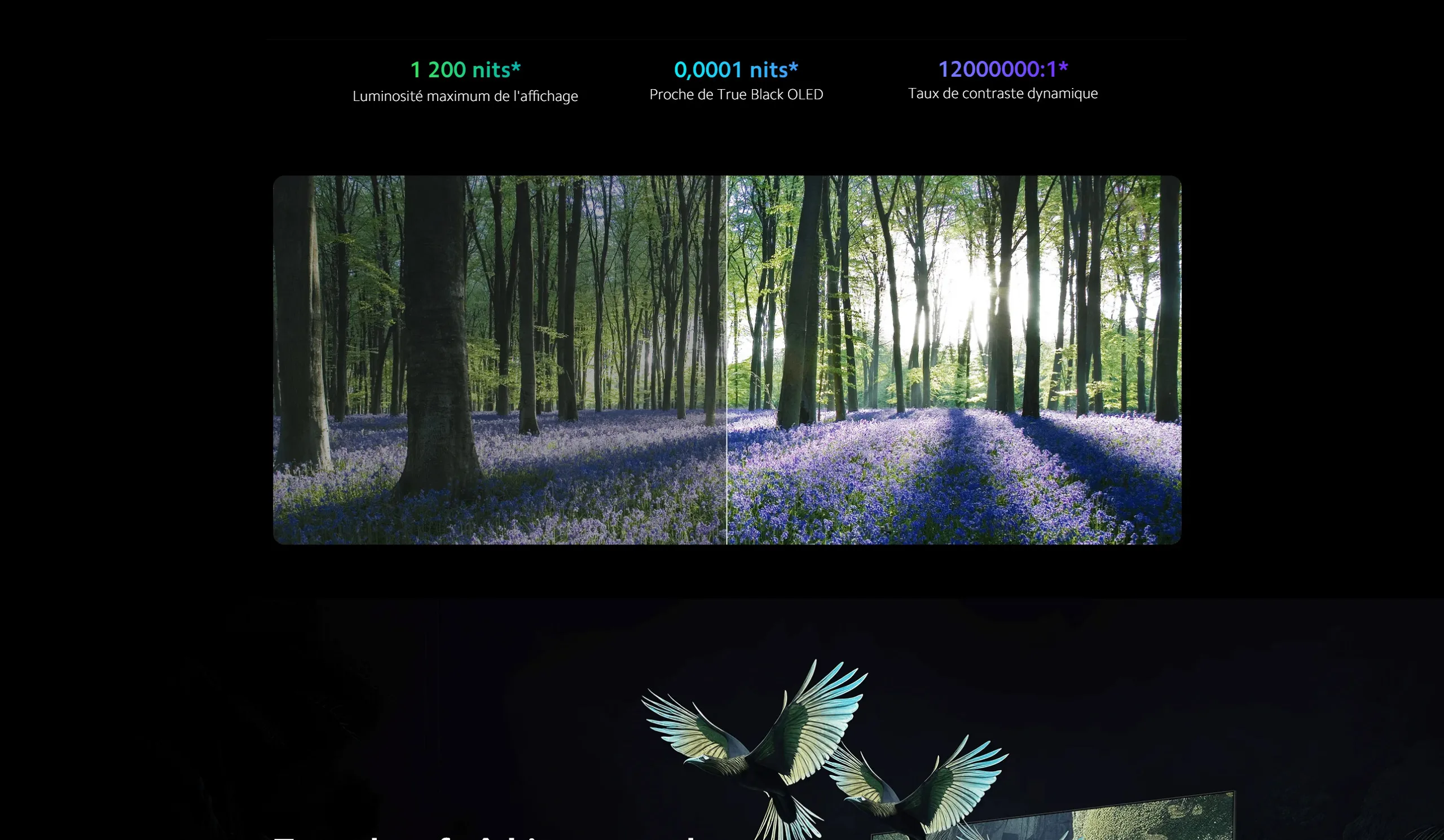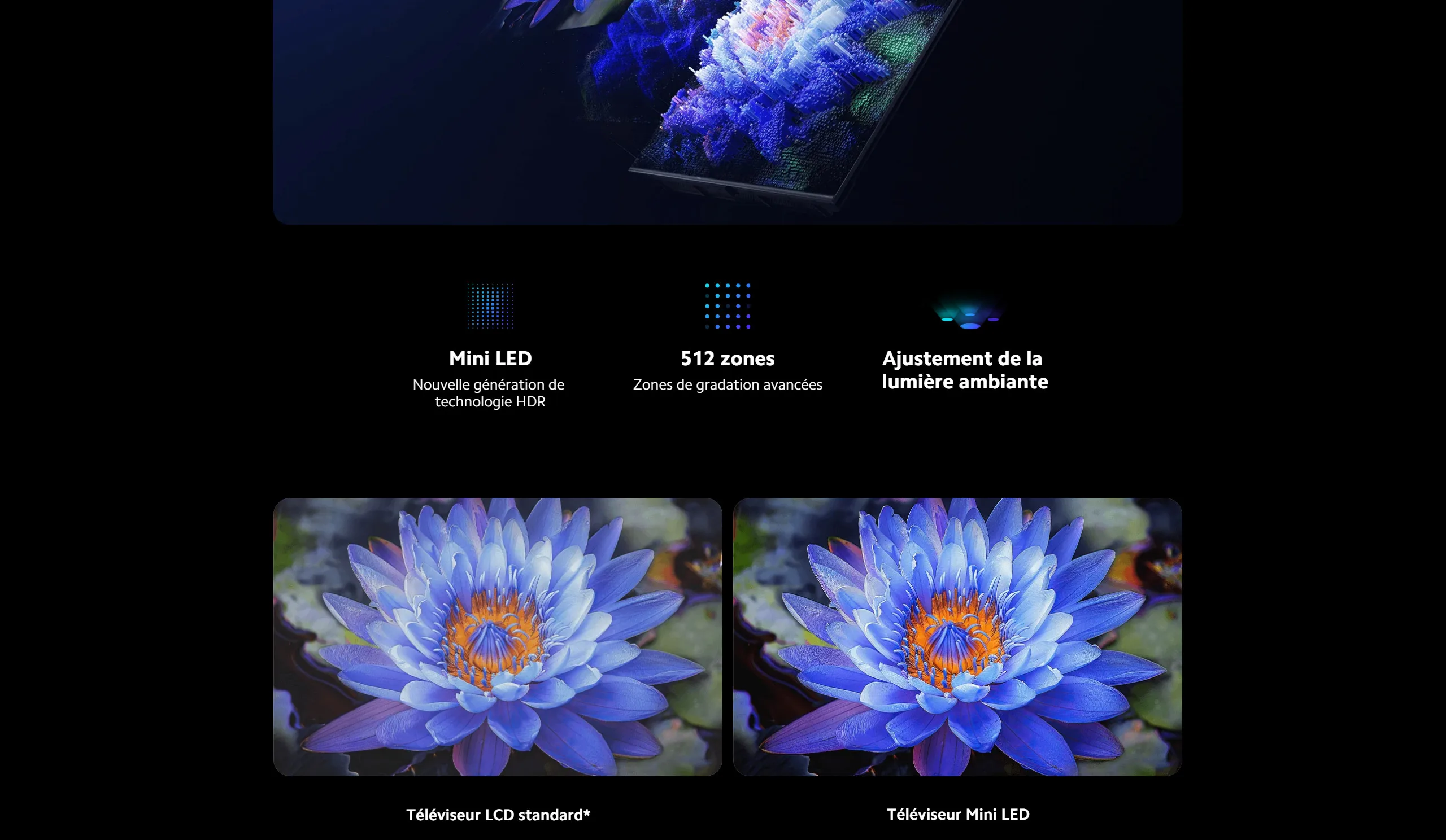 Contraste dynamique : Très élevé grâce à la technologie QD-Mini LED