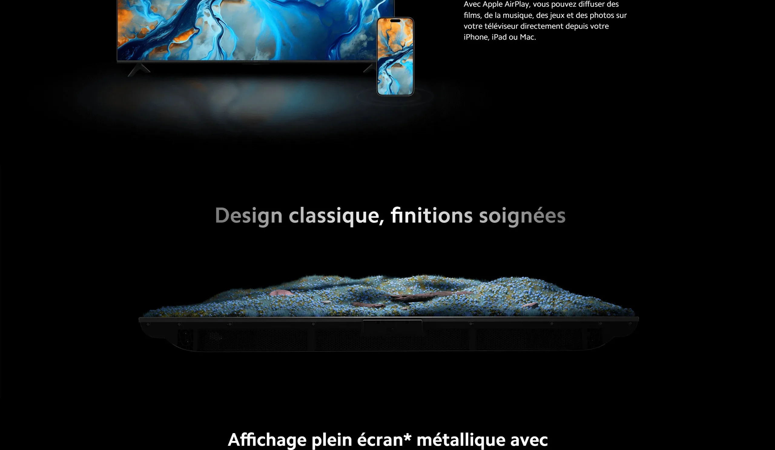Le design minimaliste avec bords fins s'intègre parfaitement à tous les intérieurs, ajoutant une touche de sophistication à votre salon ou à votre salle de divertissement. -
