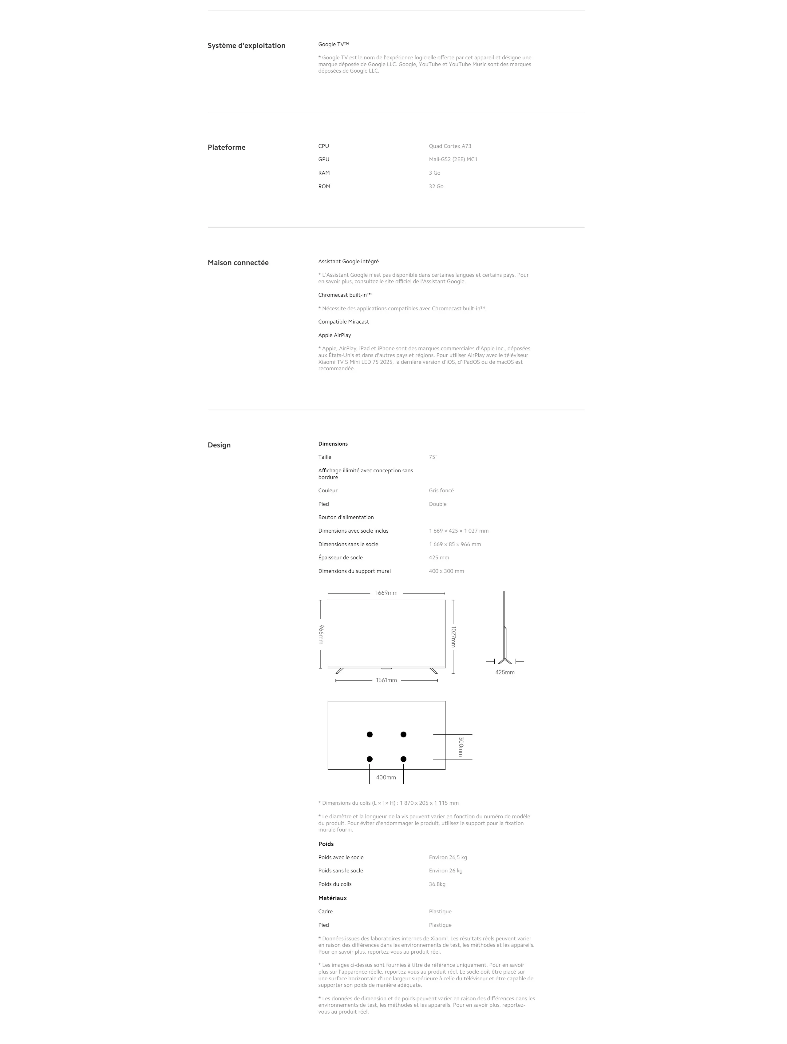 Fiche Produit : Xiaomi TV S Mini LED 75" (2025)