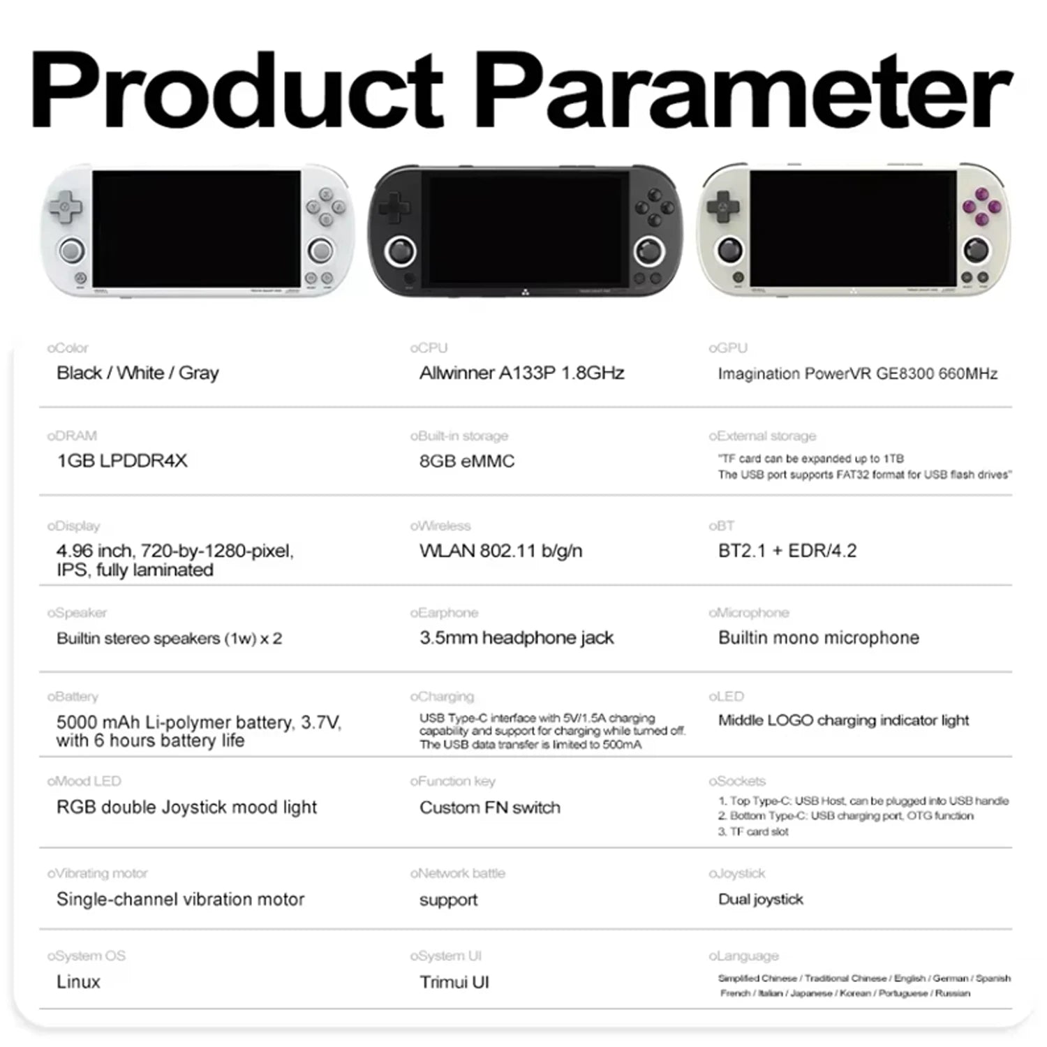 📦 Inclus : Console Trimui Smart Pro, câble USB-C, manuel